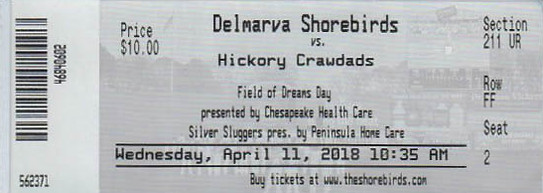 Another unique feature was a concession stand right behind home plate that is cut into the upper portion of the seating bowl. Here one could get pizza or ice cream without walking up and into the shadows of the main concourse. It’s a nice little ballpark, comfortable and friendly and that, along with free parking, a cool logo and being just 30 minutes from the beach, combine to lift Perdue Stadium a few feathers above the crowd of class A and independent ballparks that look almost exactly the same. Fly, Shorebirds, fly…